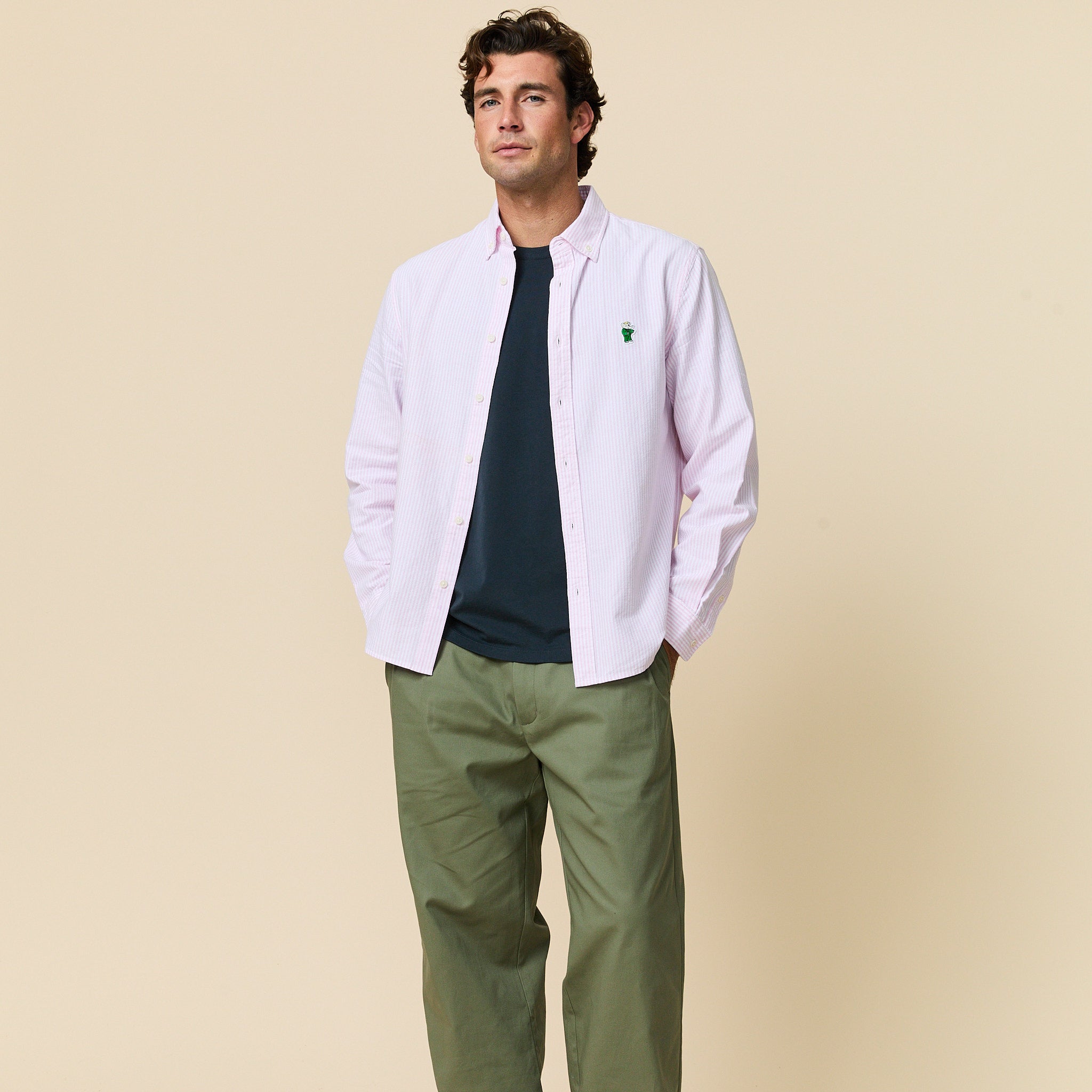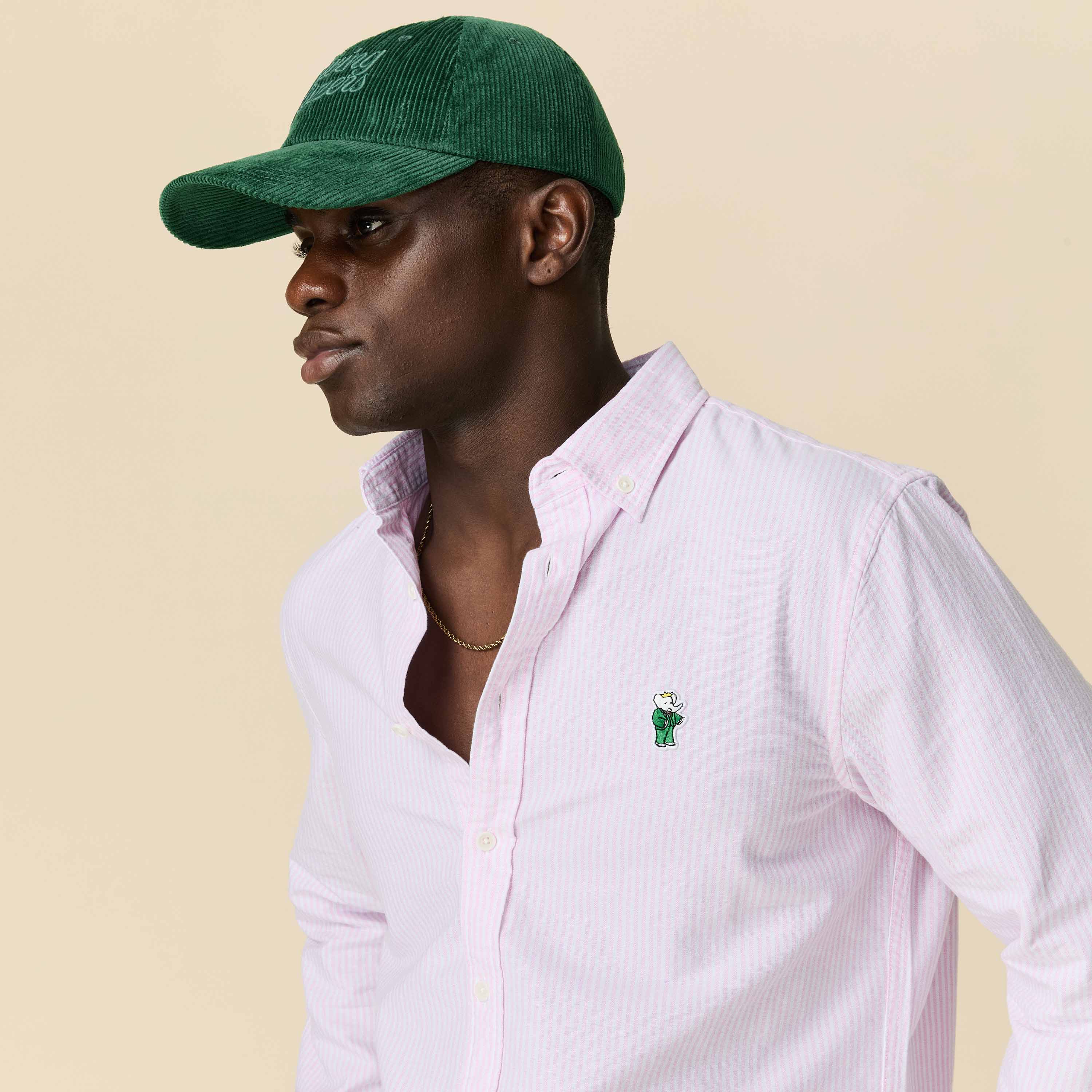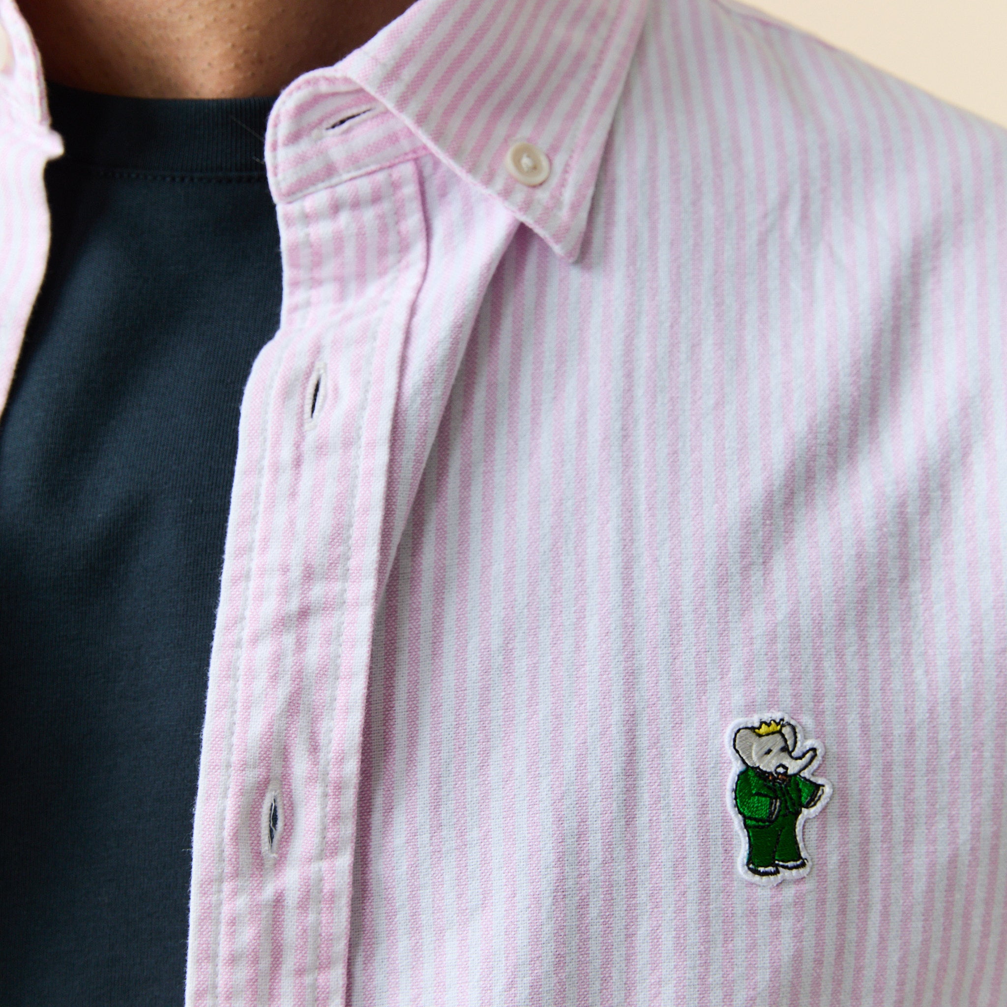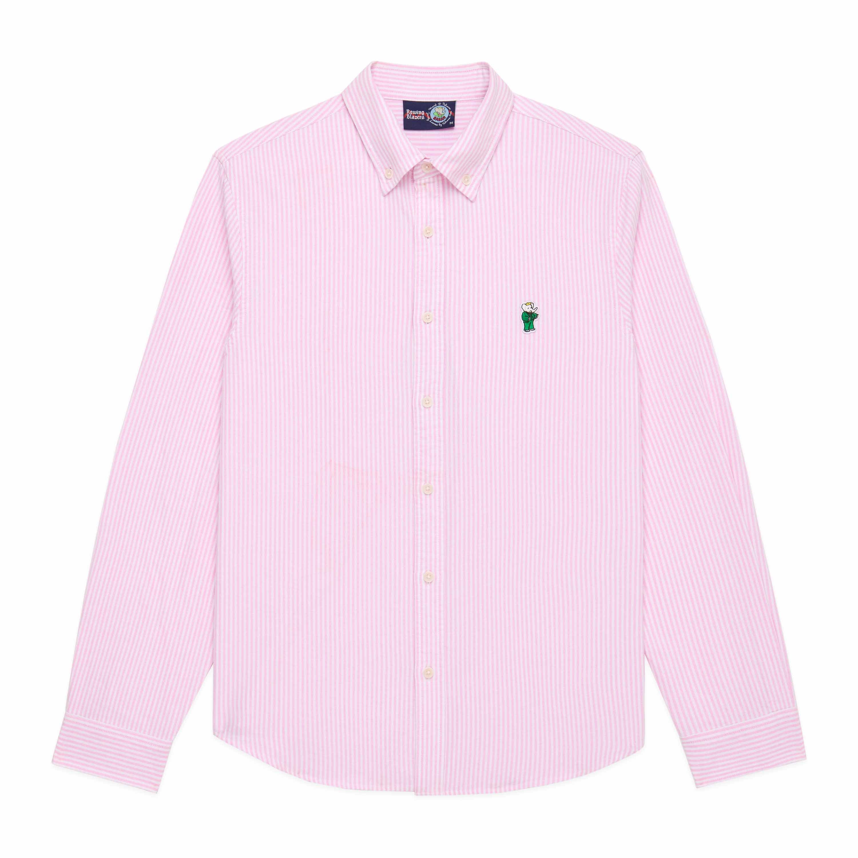 • Classic striped Oxford cloth button-down with an embroidered Babar icon on the left chest