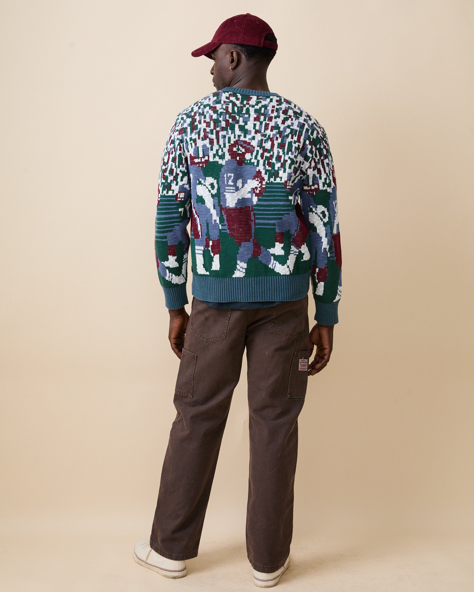 - Men’s cotton football sweater with unique splotchy pattern and a bold game-day motif