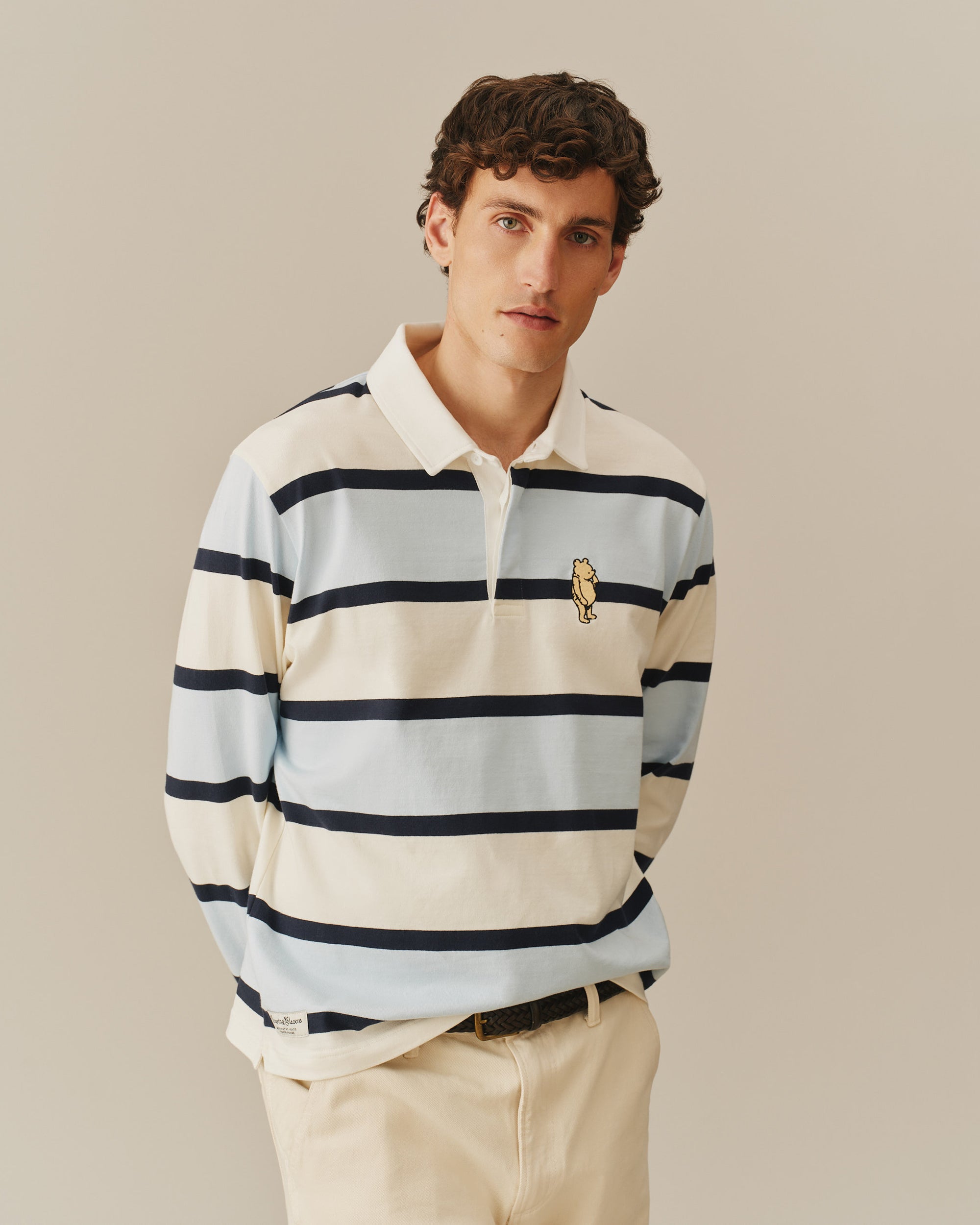 Men's Cotton Striped Pooh Rugby Blue