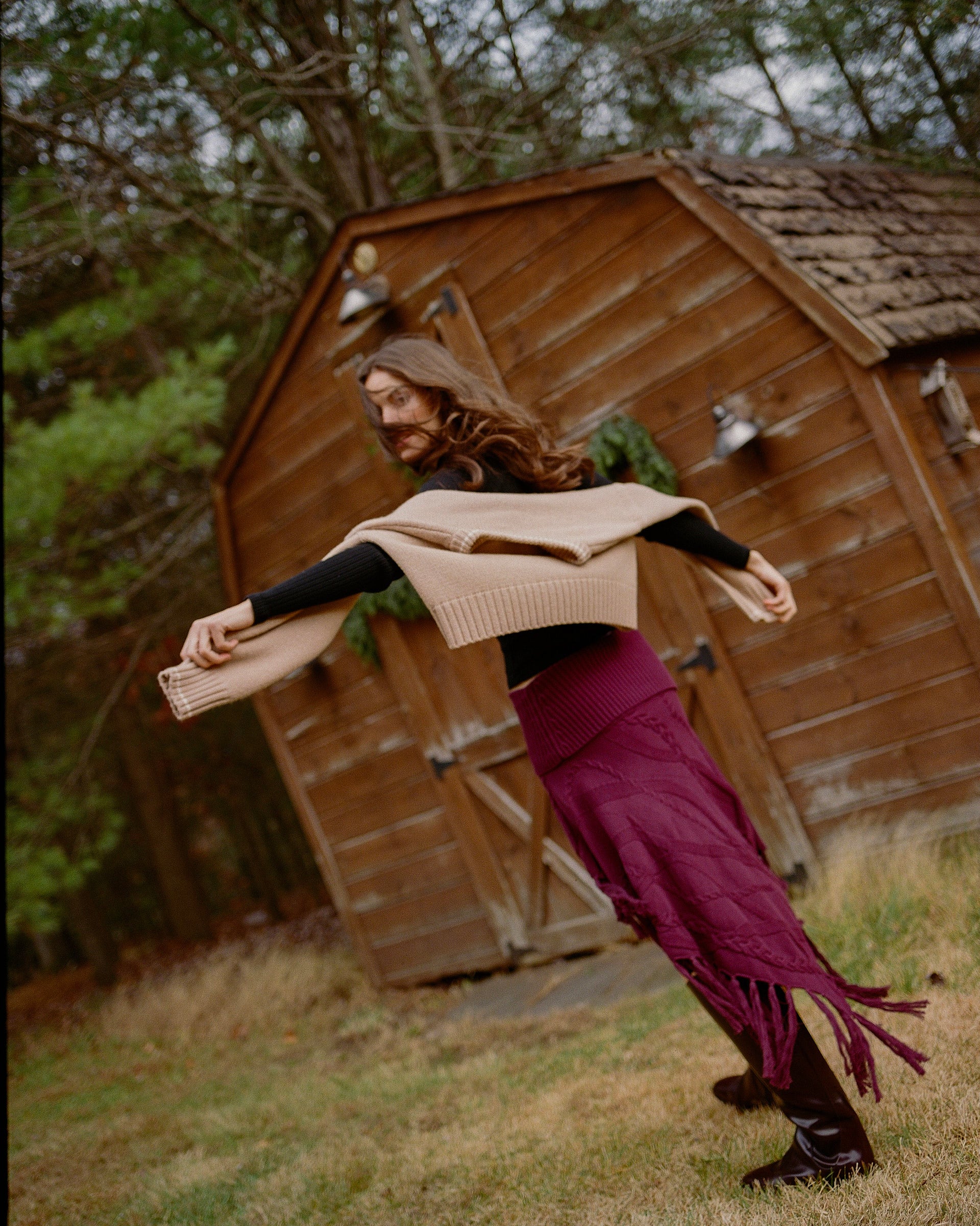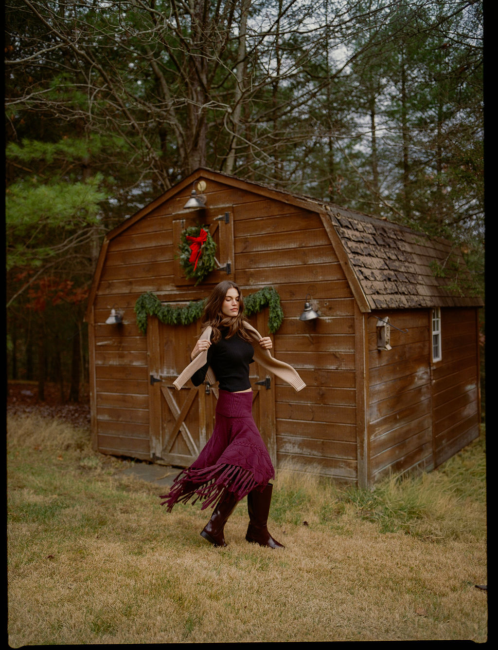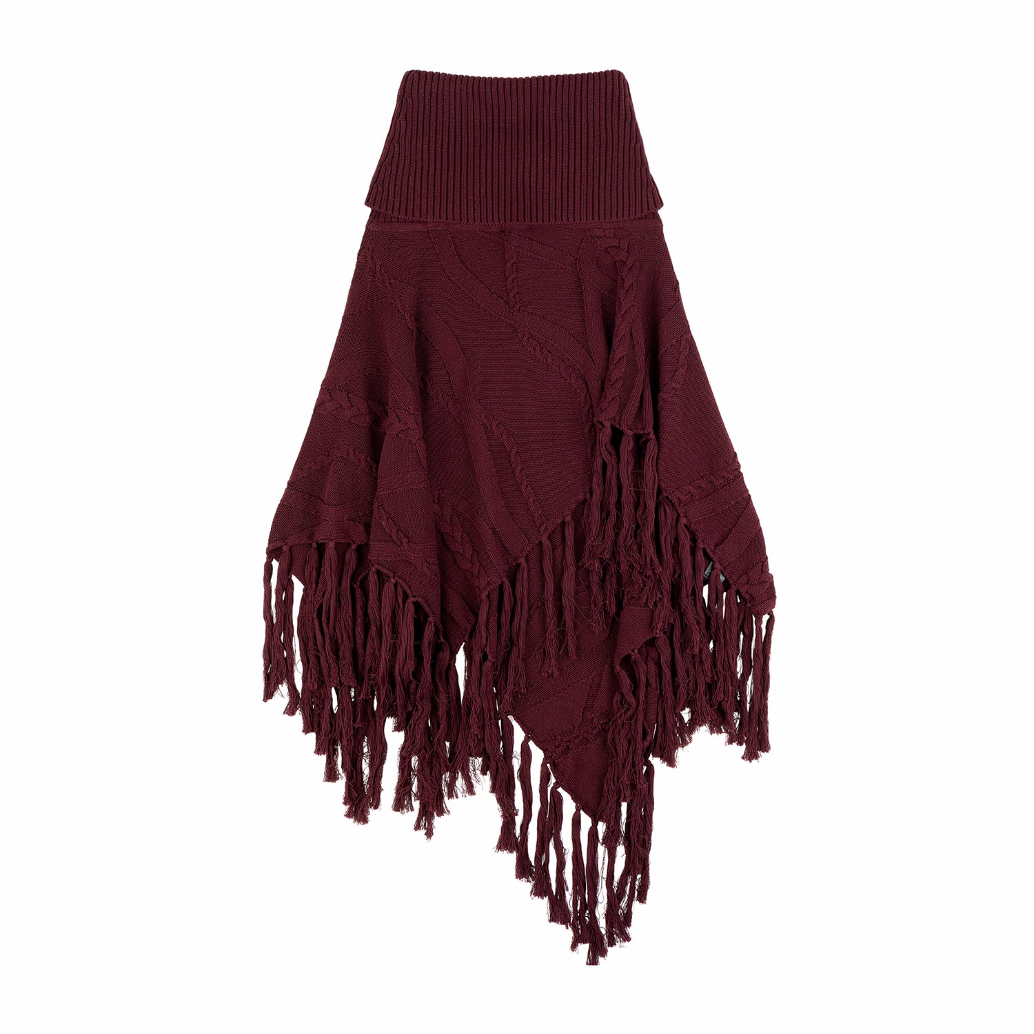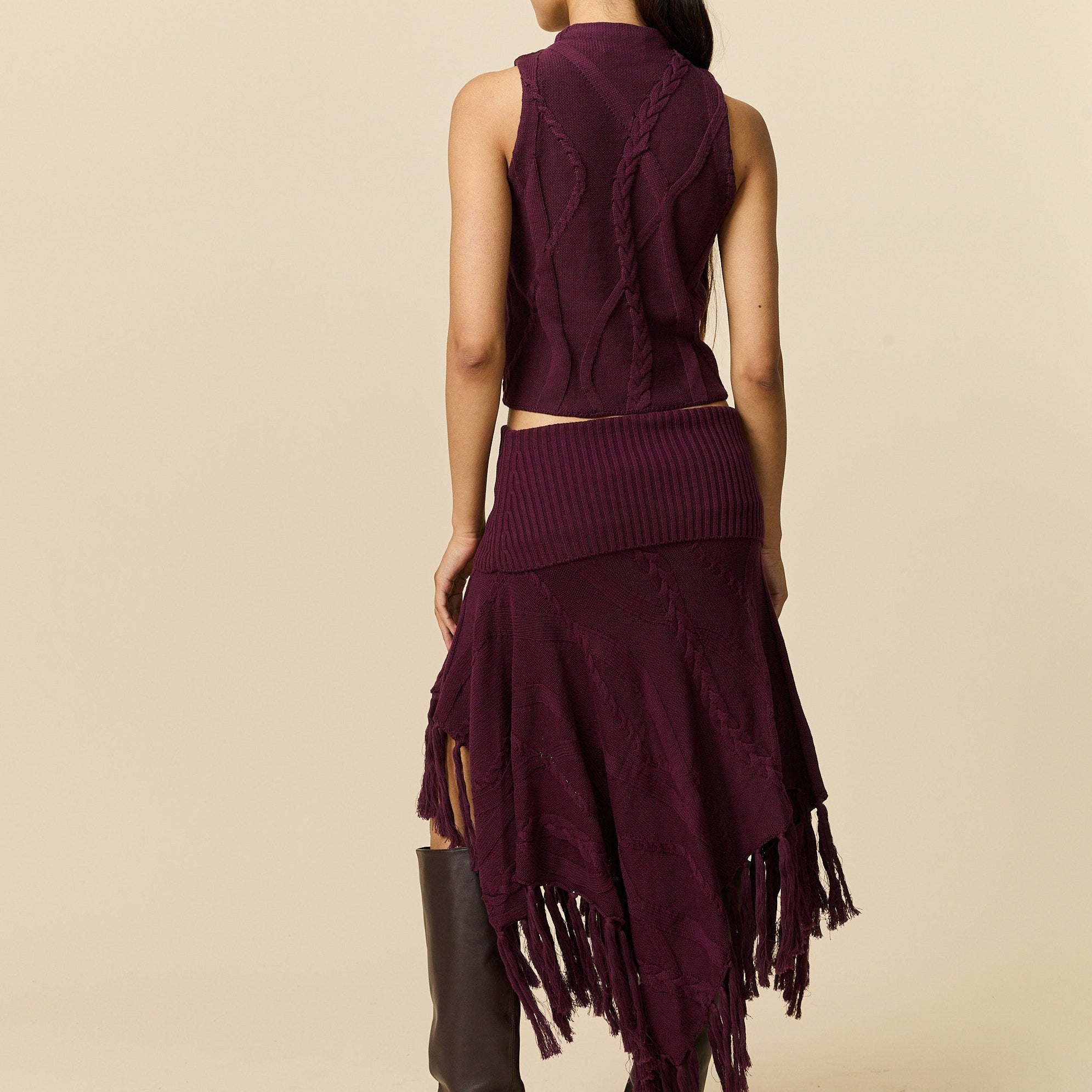 - Women’s fringed cable-knit skirt with a dramatic, asymmetrical hem Fringed.