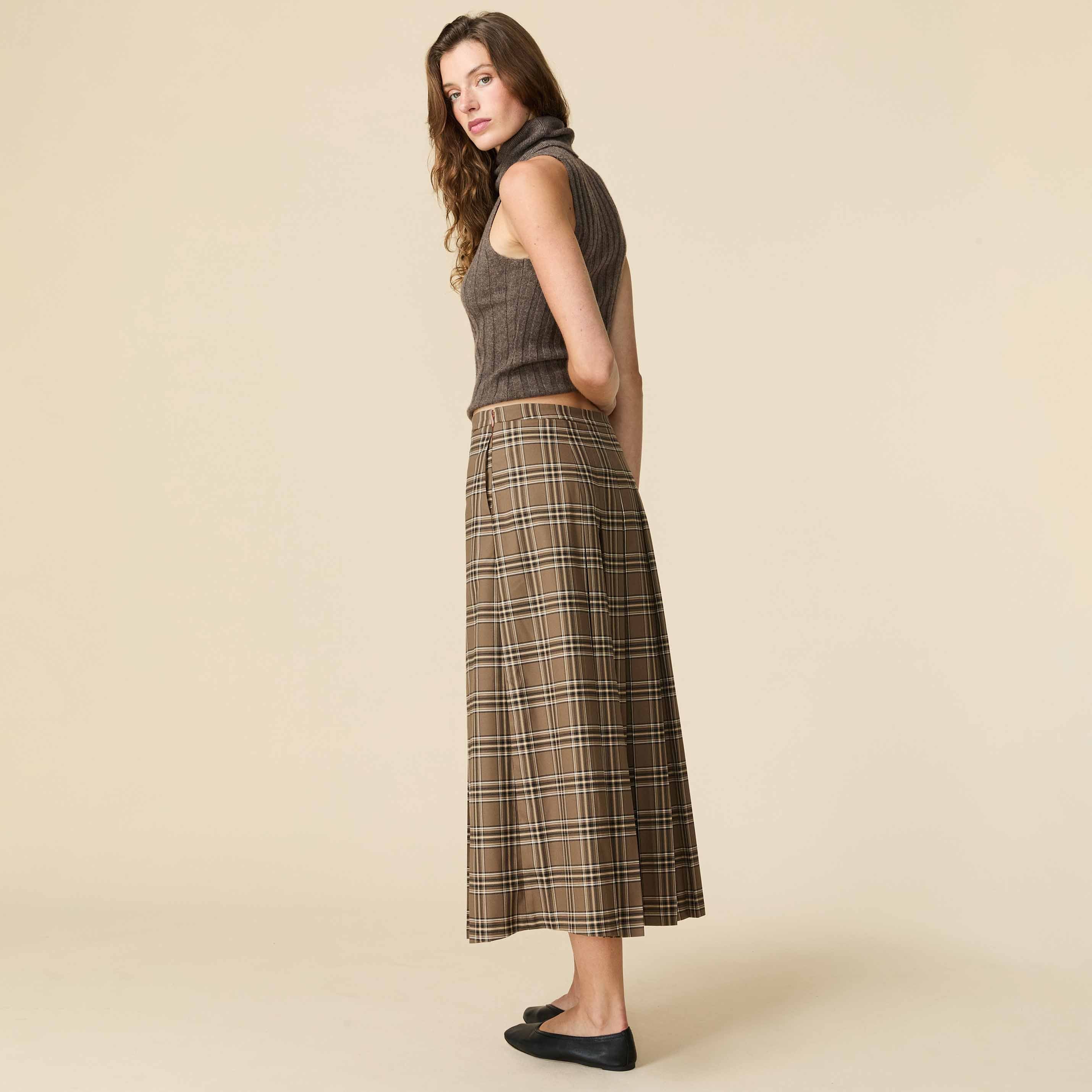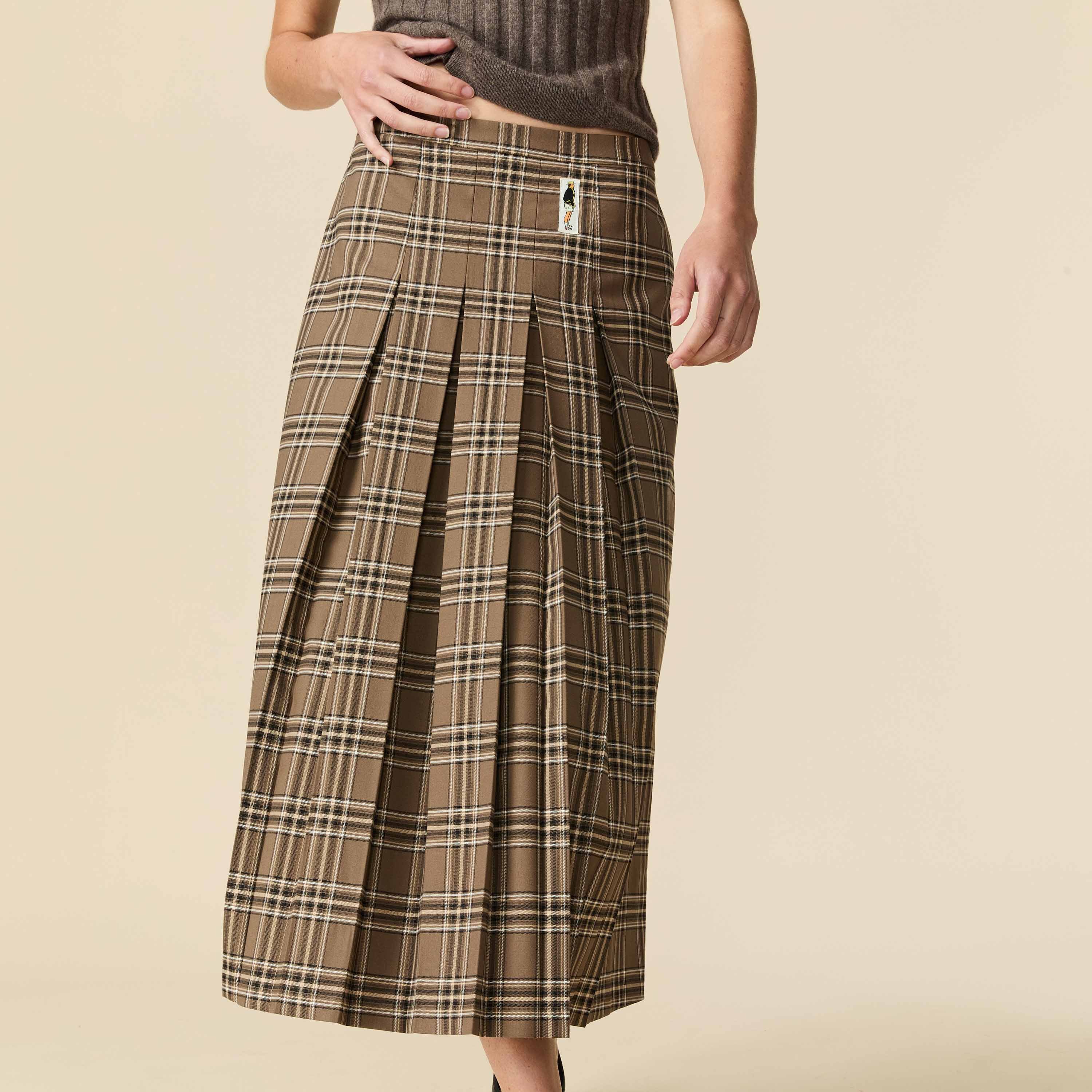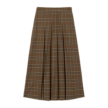 Women's Plaid Pleated Midi Skirt Brown Plaid